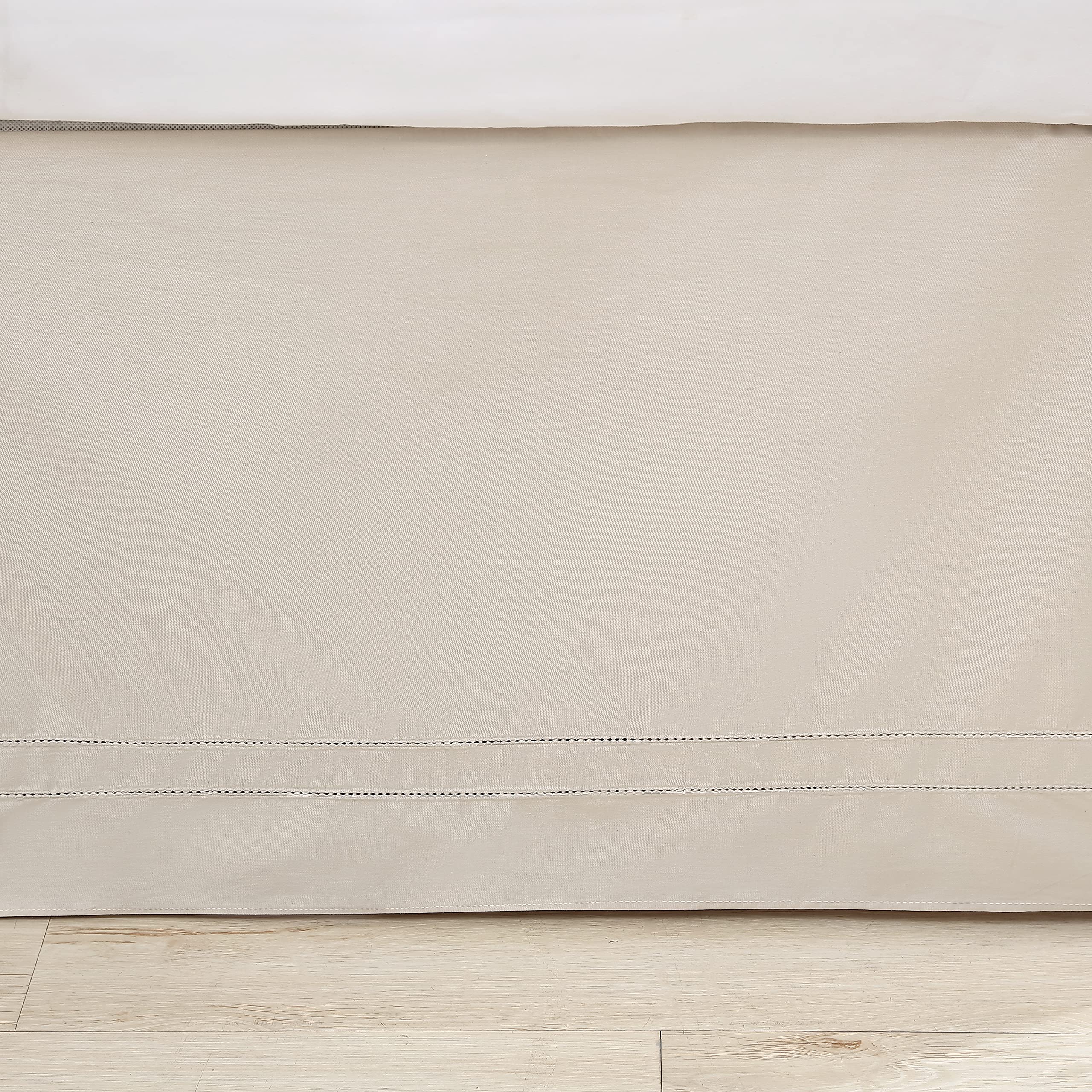 The Tommy Bahama Solid Pleated Bedskirt features a solid medium beige ground on 210 cotton sateen. Crafted for long lasting use, the bedskirt drop is 15" 100% cotton. Featuring split corners for a neat tailored look, this bedskirt is easy to care for and machine washable. Pair with a new Tommy Bahama comforter set and decorative pillows for a more complete look in your home.