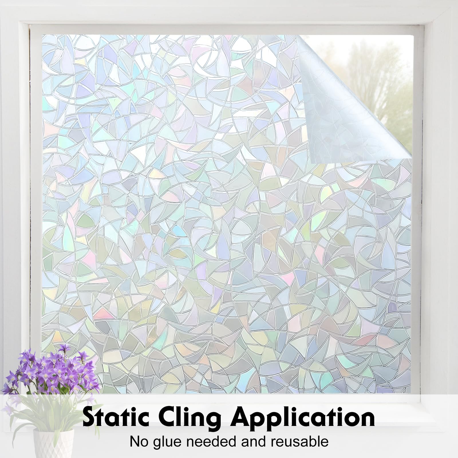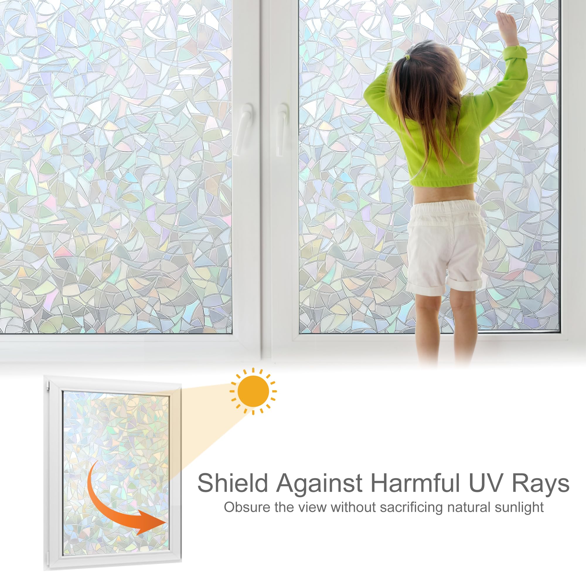 Volcanics static cling window privacy film is super easy to apply and remove due to its non-adhesive feature. The force of static sticks the film to the glass, so there will be no residue after removal and the film is completely reusable. Its ideal for rented properties or temporary privacy requirements. Volcanics film offers year-round energy savings, the dual action window film helps keep heat out in summer and reflects warmth in winter. It's like sunglasses for your home protecting the interior from harmful UV rays. The window film is safe for windows, and you can experience the comfort and see the savings. The film makes it harder for people outside to see inside. This decorative film also updates the look of a window and takes it from boring to stylish. It also serves a safety purpose: Broken windows happen, whether from a ball or an act of nature. A window covered with film is less likely to send broken pieces flying in all directions. Note: 1. Package includes: 1 * Volcanics Window Film and 1 * Manual 2. The film itself is transparent grayish-silver. The rainbow colors only show when the sunshine or any light shines through.