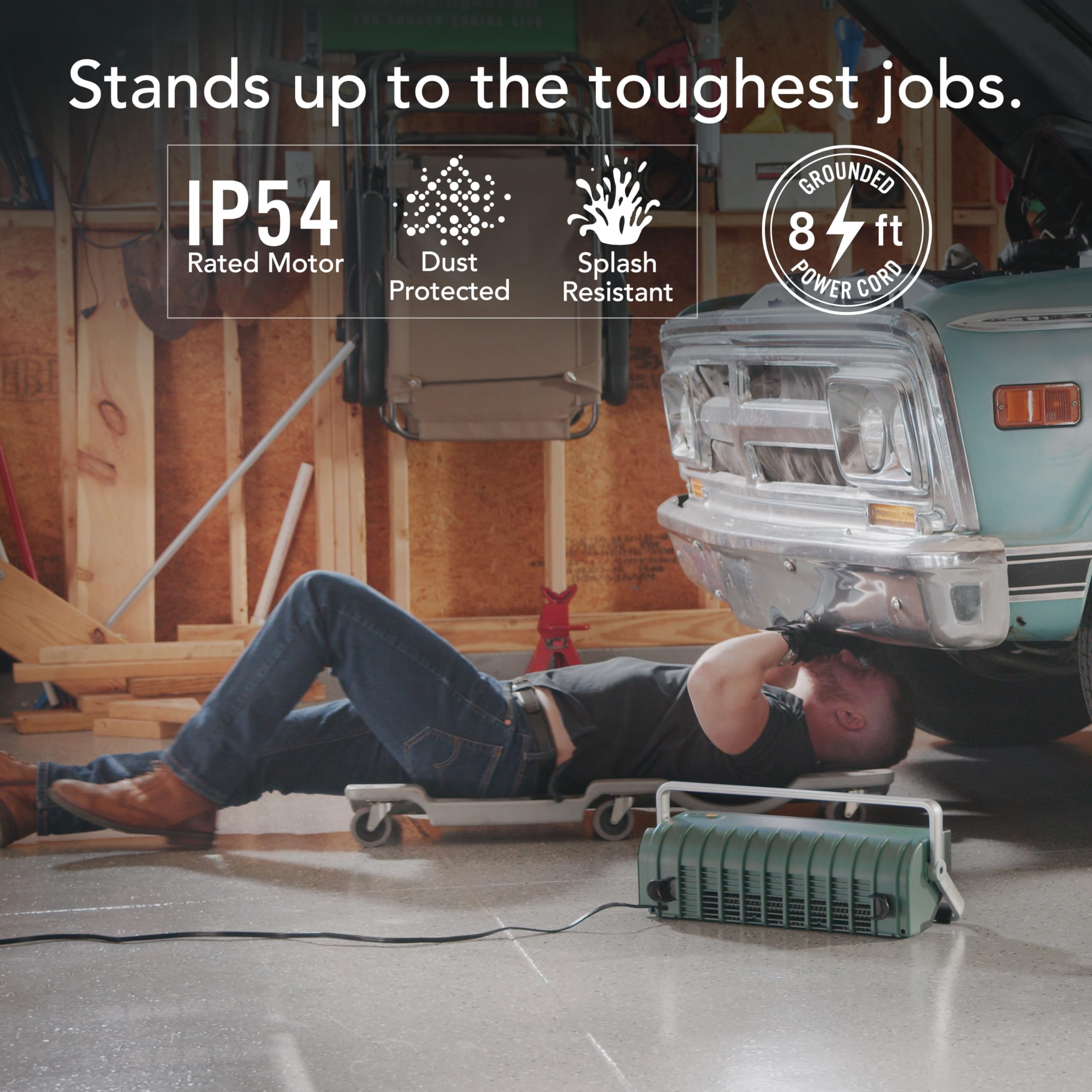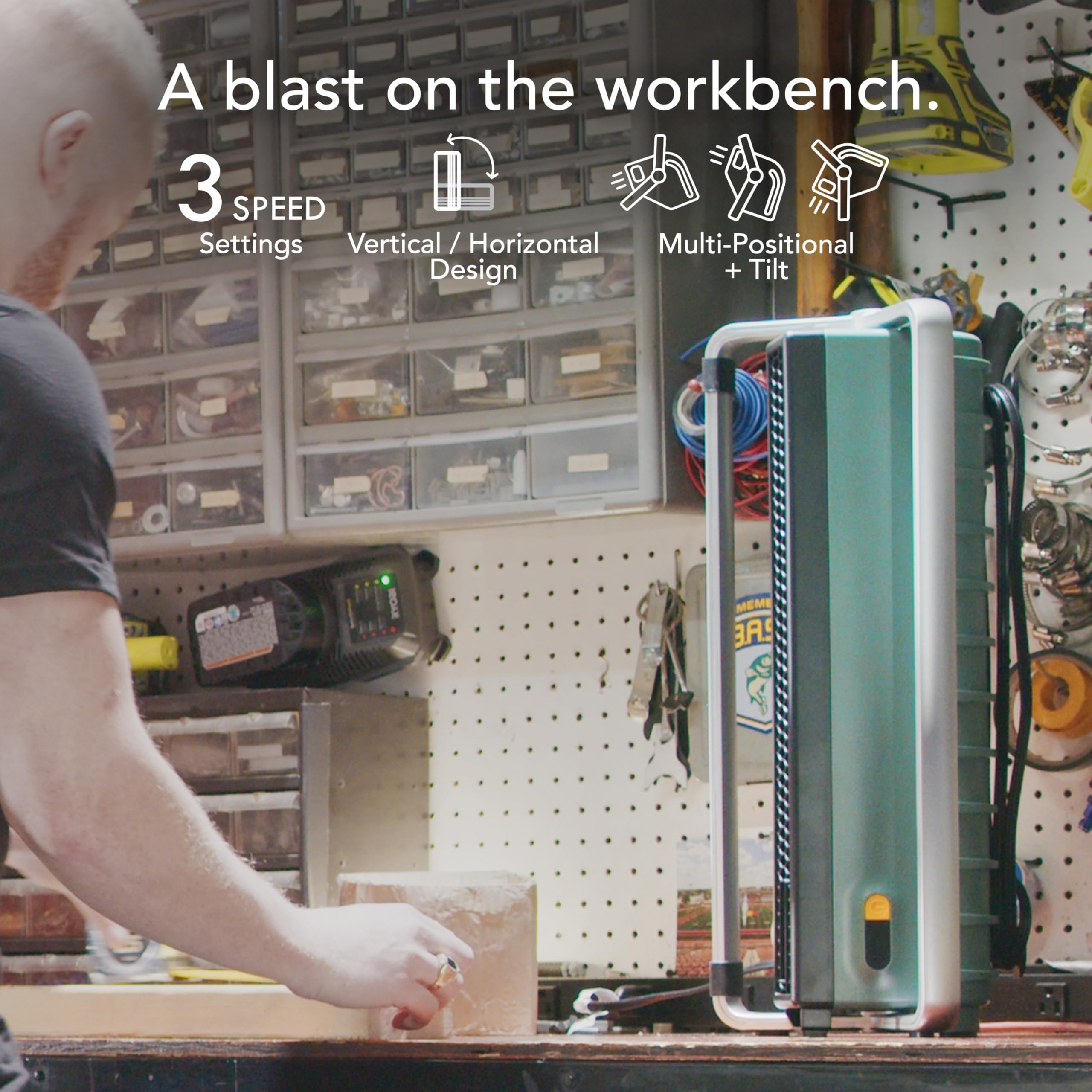 Drop BXR HD onto your workbench to create a wide path of fast-moving, cooling airflow. Take advantage of the tilt feature to tailor the airflow to the perfect angle. BXR HD's design makes it easy to drop powerful airflow into any project or workspace. The tower configuration is a great way to ventilate air through a doorway or otherwise take up minimal space when you're working in tight auarters. In either position, BXR HD punches out serious airflow at 1300 FPM. BXR makes it easy to move from place to place with minimal hassle. The integrated cord wrap keeps the extended length 8-foot cord from becoming a drag.