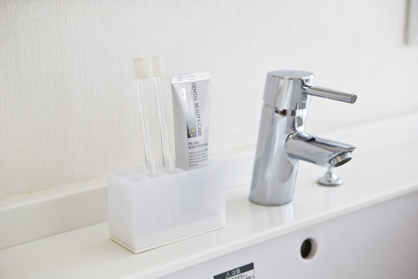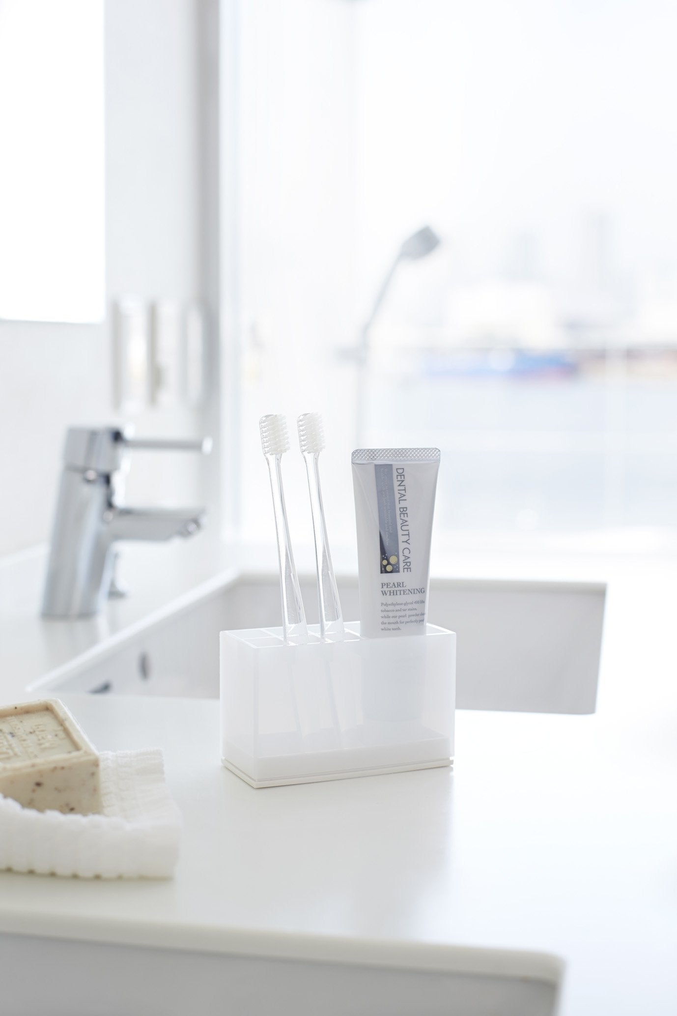 The Veil Toothbrush Stand by Yamazaki is a simple and compact organizer to store toothbrushes, toothpaste, razors, or other bathroom accessories to make more space on your sink or countertop. Brand Story Yamazaki has been bringing inspired ideas to common household items for over 100 years. Yamazaki brings thought and creativity to everyday items through design inspired by life in Japan. Life in Japan, and any city, leaves residents short on space. With this, they focus on organization, storage and space-saving. Each of their products are designed to be as smart and simple as possible. Driven by a sense of curiosity and creativity, they believe that better home goods make for a better home life. YAMAZAKI Product lines: TOSCA: A Scandinavian-inspired line of storage essentials in warm white steel with wooden accents. TOWER: Clean lines and modern design define this line of functional home goods. All products are available in black and white. RIN: A line of simple organizational tools with a modern edge and wood panel accents.