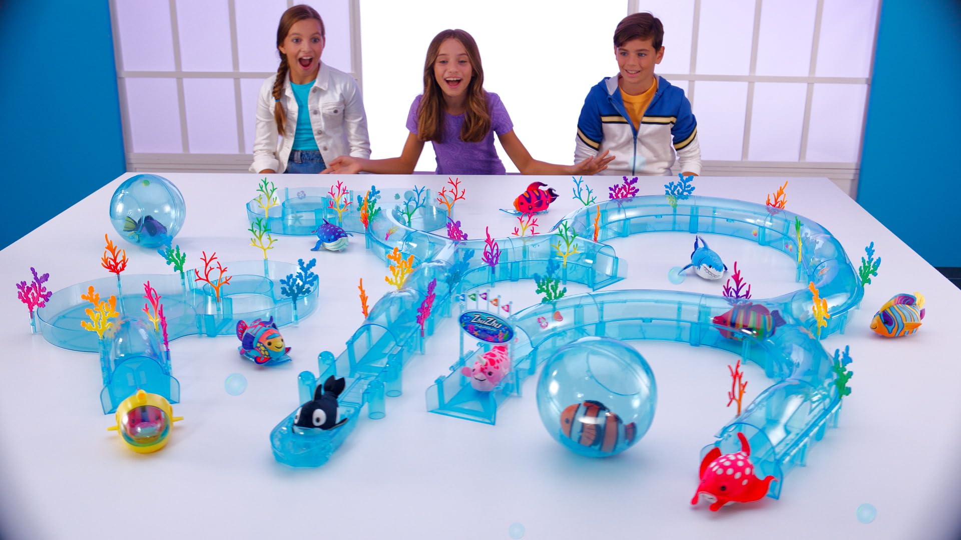 ZhuZhu Pets are back and making a huge splash with the awesome ZhuZhu Aquarium! Jump into a world of playful ZhuZhu Aquarium toys, straight from the creative tank of ZhuZhu Pets. Think of having a pet fish but without any of the mess. These cool, motorized ZhuZhu Fish are all about fun, interaction, and zero mess. Watch as your ZhuZhu Fish zip across the floor, bringing a burst of color and heaps of fun to playtime.